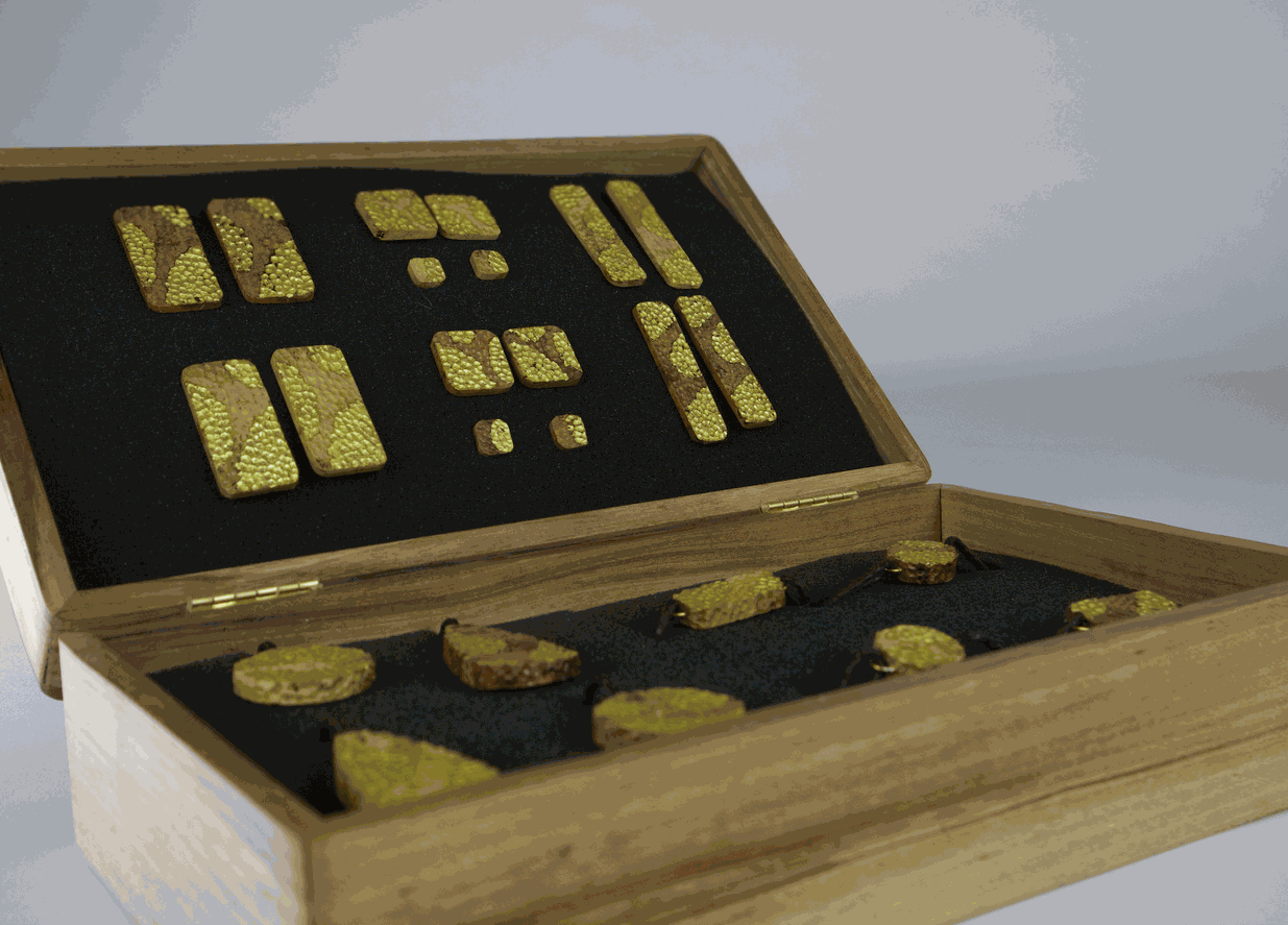 Au cœur de la création se trouvent la loupe d’Amboine et la loupe d’Acacia, deux bois rares aux veinures fascinantes. L’une séduit par ses nuances profondes et ses motifs hypnotiques, l’autre charme par sa chaleur lumineuse et ses dessins naturels délicats. Ensemble, elles offrent une matière noble et vivante, qui raconte une histoire différente à chaque pièce. C’est cette singularité qui rend chaque bijou unique, comme une empreinte laissée par la nature elle-même.